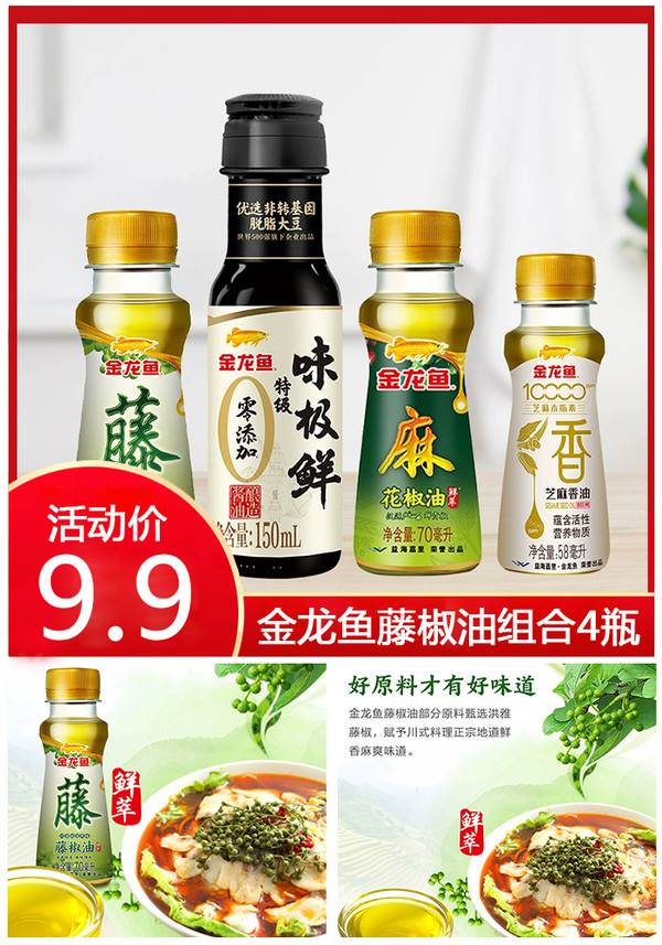 金龙鱼藤椒油100ml*2瓶/70ml*3瓶 油碟米线专用火锅蘸料拌菜 金龙鱼官方旗舰店 普通活动 金龙鱼 销量:10000 金龙鱼藤椒油100ml*2瓶/70ml*3瓶 油碟米线专用火锅蘸料拌菜 【拍4瓶仅9.4元!超值组合】金龙鱼藤椒麻油,味极鲜+藤椒油+花椒油+香油,精心炼制,麻香浓郁,无添加更健康!火锅炒菜皆宜,限时秒杀价,手慢无! 券后价9.90 限时活动 原价19.80 复制口令 前往购买 购物就到券老哥,超多实惠享不停 营销计划 轮播图(可左右滑动) 可设置图片简介 详情图 本站地址http://qlg.zskdy.cn/(防失联) THE END 说明 【声明】本站只提供信息展示,购物信息链接到第三方平台,所有交易均在第三方平台发生,与本站无关。 【合作】商合作联系邮箱yylewl@qq.com!