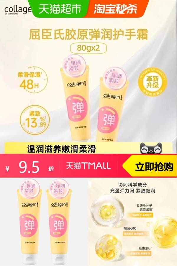 【下拉详情更优惠】屈臣氏骨胶原弹润滋养护手霜2支 天猫超市 普通活动 销量:10000 【下拉详情更优惠】屈臣氏骨胶原弹润滋养护手霜2支 【淘金币抵1.3,88减0.48,到手7.72两支】屈臣氏骨胶原弹润护手霜80g*2,满满胶原,弹润“手”护。针对性改善手部肌肤问题,弹润紧致48小时柔滑保湿。协同科学成分,充盈弹力网,紧致细润。它的香味也超级好闻,淡淡的清香,让人心情愉悦。快来试试吧! 券后价9.50 限时活动 原价29.90 复制口令 前往购买 购物就到券老哥,超多实惠享不停 MKT 轮播图(可左右滑动) 可设置图片简介 详情图 本站地址http://qlg.zskdy.cn/(防失联) THE END 说明 【声明】本站只提供信息展示,购物信息链接到第三方平台,所有交易均在第三方平台发生,与本站无关。 【合作】商合作联系邮箱yylewl@qq.com!