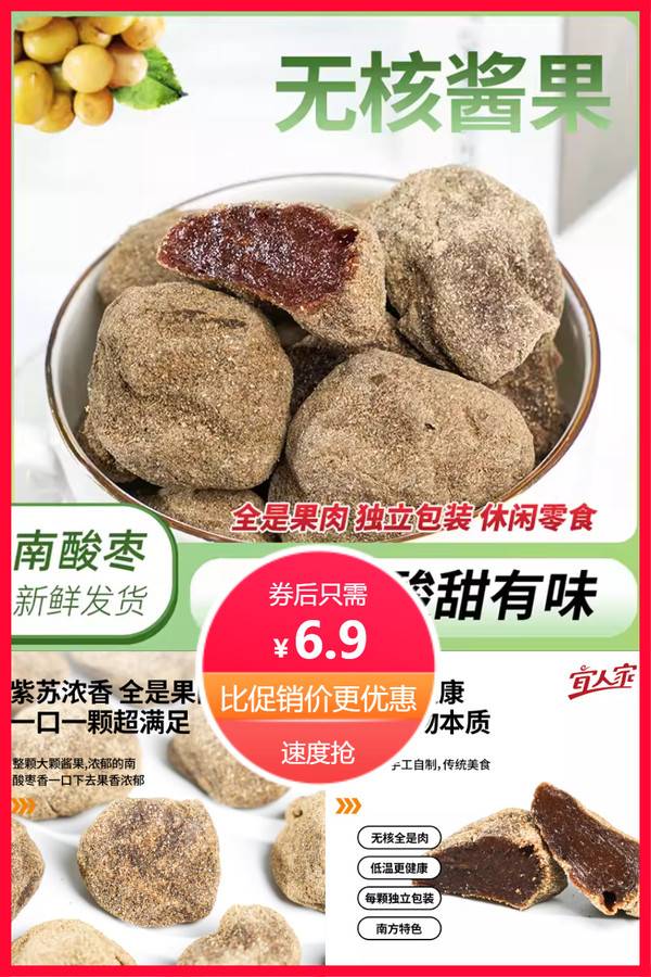 宜人家无核浆果酸枣糕酸枣粒蜜饯紫苏味休闲美味零食酸甜旅游特产 五眼果旗舰店 普通活动 销量:10000 宜人家无核浆果酸枣糕酸枣粒蜜饯紫苏味休闲美味零食酸甜旅游特产 【两种口味无核酱果约27颗,180g*2】宜人家浆果糕,无核更爽口,紫苏蜜饯味,酸甜正当时,休闲零食首.选,美味不辜负。酸枣粒珍品,旅游必备佳品,健康又美味,快来尝一尝。 券后价6.90 限时活动 原价16.90 复制口令 前往购买 购物就到券老哥,超多实惠享不停 鹊桥活动 轮播图(可左右滑动) 可设置图片简介 详情图 本站地址http://qlg.zskdy.cn/(防失联) THE END 说明 【声明】本站只提供信息展示,购物信息链接到第三方平台,所有交易均在第三方平台发生,与本站无关。 【合作】商合作联系邮箱yylewl@qq.com!