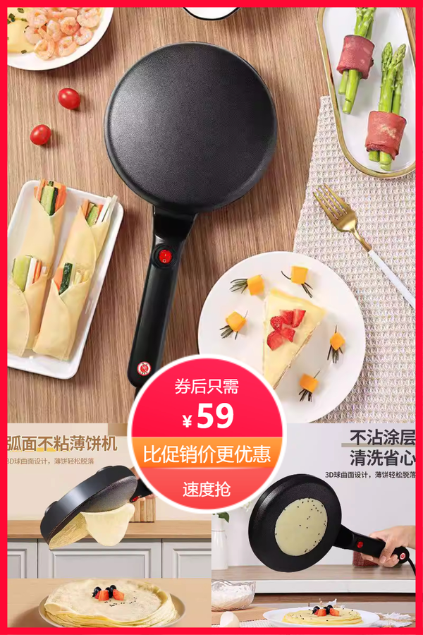 烹泰薄饼机家用春饼机千层皮春卷皮机器轻食博饼煎饼烙饼一体 汉中厨房电器 普通活动 销量:0 烹泰薄饼机家用春饼机千层皮春卷皮机器轻食博饼煎饼烙饼一体 春饼 + 千层皮 + 春卷皮 + 煎饼 + 烙饼!!多功能一体!轻松制作各种美食!!轻食博饼,健康美味!!关键是操作简单方便!! 券后价59.00 限时活动 原价159.00 复制口令 前往购买 购物就到券老哥,超多实惠享不停 营销计划 轮播图(可左右滑动) 可设置图片简介 详情图 本站地址http://qlg.zskdy.cn/(防失联) THE END 说明 【声明】本站只提供信息展示,购物信息链接到第三方平台,所有交易均在第三方平台发生,与本站无关。 【合作】商合作联系邮箱yylewl@qq.com!