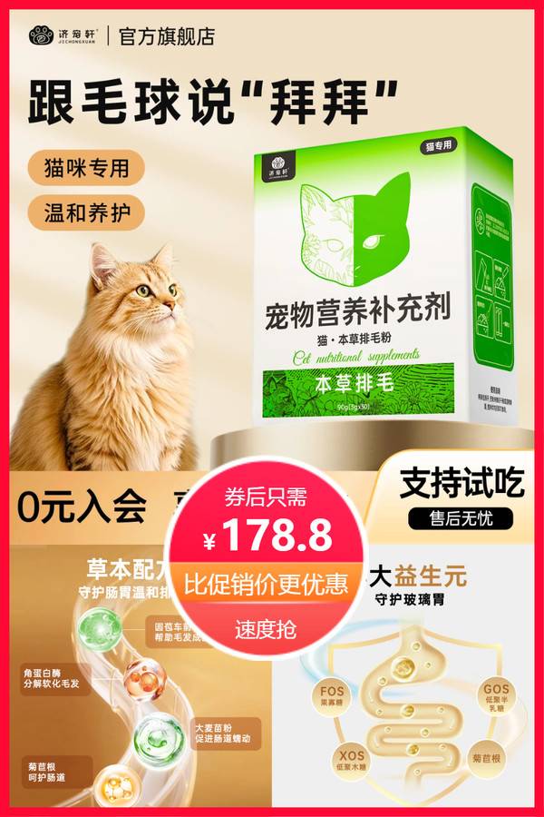 济宠轩益生元排毛粉猫咪吐毛专用化毛球片猫草片化毛膏本草调肠胃 济宠轩旗舰店 普通活动 销量:6000 济宠轩益生元排毛粉猫咪吐毛专用化毛球片猫草片化毛膏本草调肠胃 济宠轩益生元排毛粉采用天然草本配方,不添加任何化学成分,安全有效。它可以帮助猫咪顺利排出体内的毛球,同时调理肠胃,让猫咪的肠胃更加健康。 券后价178.80 限时活动 原价198.80 复制口令 前往购买 购物就到券老哥,超多实惠享不停 营销计划 轮播图(可左右滑动) 可设置图片简介 详情图 本站地址http://qlg.zskdy.cn/(防失联) THE END 说明 【声明】本站只提供信息展示,购物信息链接到第三方平台,所有交易均在第三方平台发生,与本站无关。 【合作】商合作联系邮箱yylewl@qq.com!