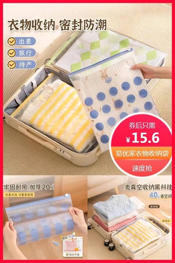 易优家旅行收纳袋衣服拉链密封分装透明内衣行李箱待产衣物收纳袋 易优家旗舰店 普通活动 Easy Your Home/易优家 销量:10000 易优家旅行收纳袋衣服拉链密封分装透明内衣行李箱待产衣物收纳袋 首单1元+淘金币抵扣0.37元+超级立减2.3元+券1元后约14.23元,满3件送滑索收纳袋,赠送运费险!进口食品级原料,出口品质18年,换季家庭收纳、差旅出行分装,可防尘防潮防水,线下大型商超均有售 券后价15.60 限时活动 原价18.90 复制口令 前往购买 购物就到券老哥,超多实惠享不停 营销计划 轮播图(可左右滑动) 可设置图片简介 详情图 本站地址http://qlg.zskdy.cn/(防失联) THE END 说明 【声明】本站只提供信息展示,购物信息链接到第三方平台,所有交易均在第三方平台发生,与本站无关。 【合作】商合作联系邮箱yylewl@qq.com!
