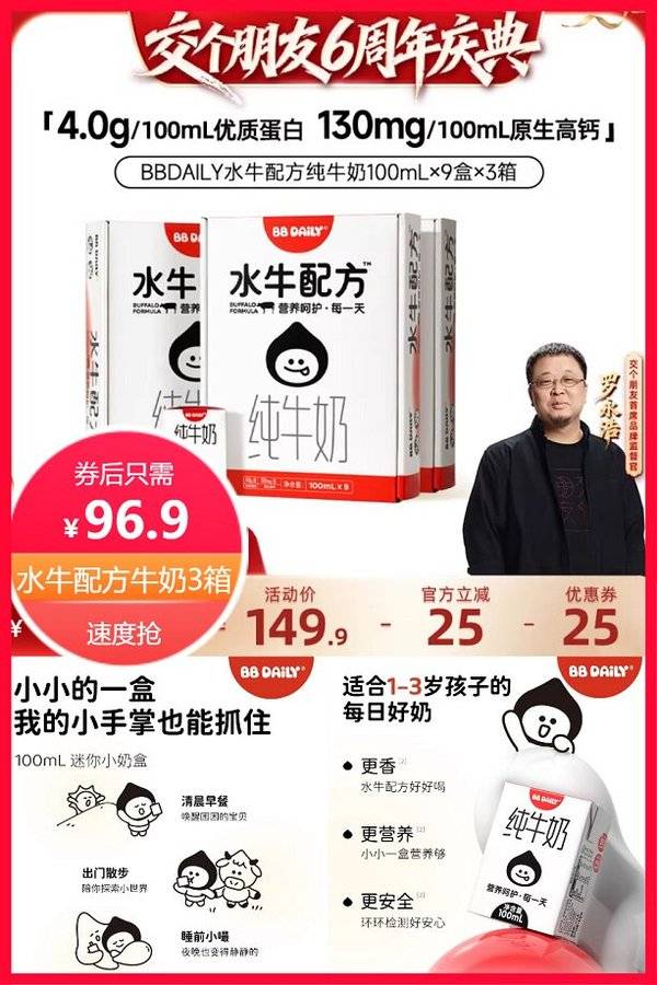 【交个朋友6周年庆典】隔壁刘奶奶 BB Daily水牛配方纯牛奶*3箱 隔壁刘奶奶旗舰店 普通活动 隔壁刘奶奶 销量:43 【交个朋友6周年庆典】隔壁刘奶奶 BB Daily水牛配方纯牛奶*3箱 超级立减25元+券25元+88vip省5元+淘金币省3元后约91.9元,单箱只需30.6元,水牛配方纯牛奶100ml*9盒*3箱,早餐来一瓶,营养很丰富。Q萌迷你,便携易带。天然好喝,天然甜。水牛配方 券后价96.90 限时活动 原价149.90 复制口令 前往购买 购物就到券老哥,超多实惠享不停 营销计划 轮播图(可左右滑动) 可设置图片简介 详情图 本站地址http://qlg.zskdy.cn/(防失联) THE END 说明 【声明】本站只提供信息展示,购物信息链接到第三方平台,所有交易均在第三方平台发生,与本站无关。 【合作】商合作联系邮箱yylewl@qq.com!