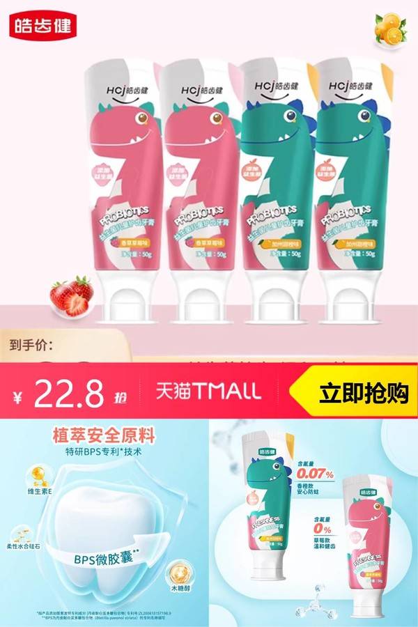 皓齿健益生菌儿童牙膏换牙期2-3-6-8-12岁以上宝宝防蛀旗舰店官方 皓齿健旗舰店 普通活动 销量:10000 皓齿健益生菌儿童牙膏换牙期2-3-6-8-12岁以上宝宝防蛀旗舰店官方 【淘金币抵扣3.8,到手19,凑消费券到手低至16.7,单支到手4.18左右!!】天然含氟配方,为孩子的牙齿筑起坚固防线,有效预防蛀牙。 券后价22.80 限时活动 原价26.00 复制口令 前往购买 购物就到券老哥,超多实惠享不停 营销计划 轮播图(可左右滑动) 可设置图片简介 详情图 本站地址http://qlg.zskdy.cn/(防失联) THE END 说明 【声明】本站只提供信息展示,购物信息链接到第三方平台,所有交易均在第三方平台发生,与本站无关。 【合作】商合作联系邮箱yylewl@qq.com!