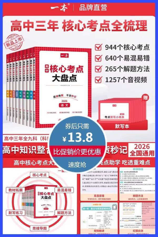 一本高中核心考点大盘点政史地生语数英物化高中基础知识点清单必修选修高一二高三高考复习预习资料清单考点默写纸条高中教辅书 一本图书旗舰店 普通活动 一本 销量:4000 一本高中核心考点大盘点政史地生语数英物化高中基础知识点清单必修选修高一二高三高考复习预习资料清单考点默写纸条高中教辅书 送考点默写小纸条默写本!一本高中核心考点大盘点科目任选,高中通用,944个核心考点,640个易混易错,265个解题方法,1257个音视频,高中知识整合,晨读晚默,干货秒记,高中三年,核心考点全梳理! 券后价13.80 限时活动 原价23.80 复制口令 前往购买 购物就到券老哥,超多实惠享不停 营销计划 轮播图(可左右滑动) 可设置图片简介 详情图 本站地址http://qlg.zskdy.cn/(防失联) THE END 说明 【声明】本站只提供信息展示,购物信息链接到第三方平台,所有交易均在第三方平台发生,与本站无关。 【合作】商合作联系邮箱yylewl@qq.com!