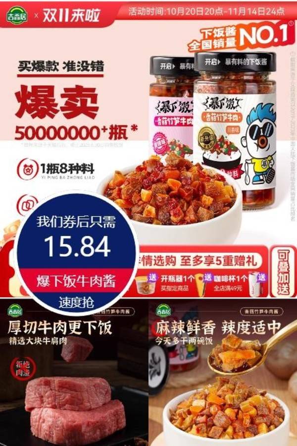 吉香居暴下饭香菇竹笋牛肉酱拌饭拌面辣椒酱下饭酱炒菜专用调味料 吉香居食品旗舰店 普通活动 销量:10000 吉香居暴下饭香菇竹笋牛肉酱拌饭拌面辣椒酱下饭酱炒菜专用调味料 大牌吉香居!!限时福利来袭!现在下单15.19到手两瓶200g*2非常合适!在外面买都是13块往上一瓶!!!鲜辣下饭,香辣有嚼劲,口感丰富,米饭好搭档~三种口味速度抢!!叠加88更加优惠!! 券后价16.80 限时活动 原价32.30 复制口令 前往购买 购物就到券老哥,超多实惠享不停 MKT 轮播图(可左右滑动) 可设置图片简介 详情图 本站地址http://qlg.zskdy.cn/(防失联) THE END 说明 【声明】本站只提供信息展示,购物信息链接到第三方平台,所有交易均在第三方平台发生,与本站无关。 【合作】商合作联系邮箱yylewl@qq.com!