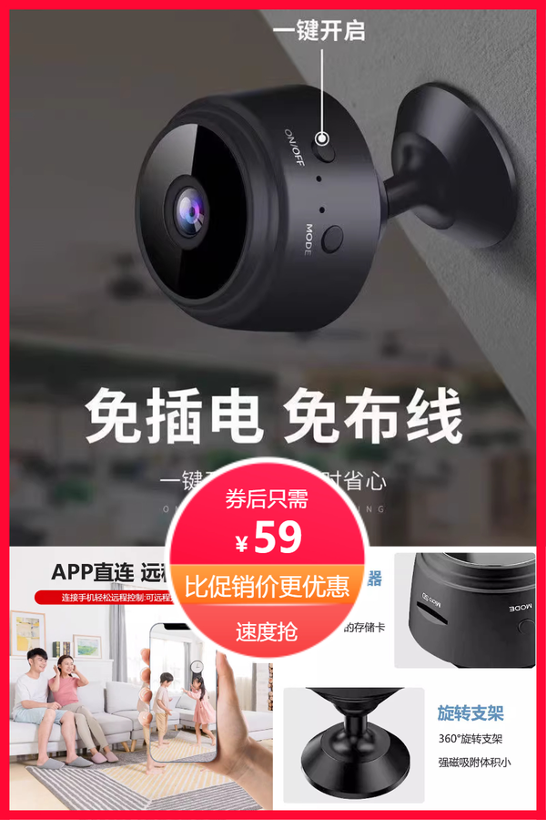 A9监控网络摄像头免安装家用无线WiFi手机远程智能高清摄像头 欲买桂花同载酒i 普通活动 销量:0 A9监控网络摄像头免安装家用无线WiFi手机远程智能高清摄像头 免安装 + 无线WiFi + 手机远程控制!!超.清晰!使用超.便捷!随时随地查看家中情况!!关键支持智能监控!! 券后价59.00 限时活动 原价159.00 复制口令 前往购买 购物就到券老哥,超多实惠享不停 营销计划 轮播图(可左右滑动) 可设置图片简介 详情图 本站地址http://qlg.zskdy.cn/(防失联) THE END 说明 【声明】本站只提供信息展示,购物信息链接到第三方平台,所有交易均在第三方平台发生,与本站无关。 【合作】商合作联系邮箱yylewl@qq.com!