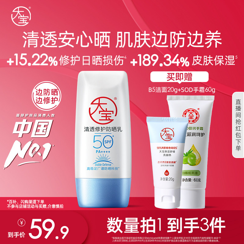 大宝B5清透修护高倍防晒霜露温和保湿户外防紫外线敏感肌专研官方 大宝官方旗舰店 普通活动 销量:10000 大宝B5清透修护高倍防晒霜露温和保湿户外防紫外线敏感肌专研官方 【官方立减14元】【下拉详情页可叠加淘金币】大宝B5清透修护高倍防晒霜,防晒妆前修护三合一,清透安心晒,3重养肤精粹,舒缓泛红,强韧屏障,温和不刺激,边防边养,敏肌更安心,清爽肤感,肌肤畅快呼吸 券后价34.90 限时活动 原价59.90 复制口令 前往购买 购物就到券老哥,超多实惠享不停 3 轮播图(可左右滑动) 可设置图片简介 详情图 本站地址http://qlg.zskdy.cn/(防失联) THE END 说明 【声明】本站只提供信息展示,购物信息链接到第三方平台,所有交易均在第三方平台发生,与本站无关。 【合作】商合作联系邮箱yylewl@qq.com!