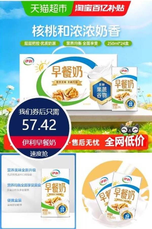 【伊利送金】伊利麦香早餐牛奶250ml×24盒/整箱学生营养早餐搭档 天猫超市 聚划算 伊利 销量:10000 【伊利送金】伊利麦香早餐牛奶250ml×24盒/整箱学生营养早餐搭档 【买反-红-包1+金币补-贴】早餐奶安排上,每天来一盒,搭配面包,好吃营养还健康!性价比很哇塞~超市这样一箱要72! 券后价57.42 限时活动 原价74.00 复制口令 前往购买 购物就到券老哥,超多实惠享不停 营销计划 轮播图(可左右滑动) 可设置图片简介 详情图 本站地址http://qlg.zskdy.cn/(防失联) THE END 说明 【声明】本站只提供信息展示,购物信息链接到第三方平台,所有交易均在第三方平台发生,与本站无关。 【合作】商合作联系邮箱yylewl@qq.com!