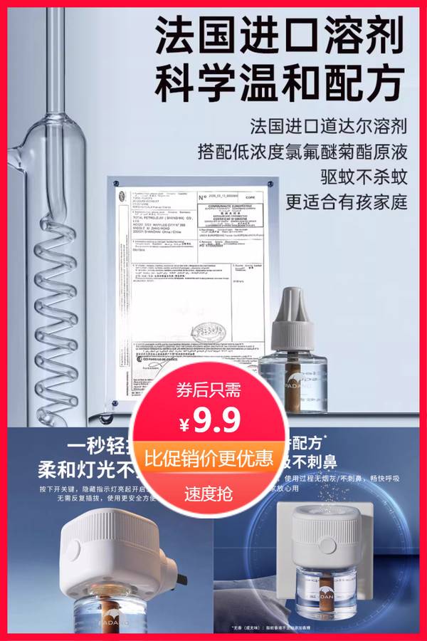 帕达诺电蚊香液无味婴儿孕妇宝宝专用驱蚊液器儿童婴幼儿母婴可用 帕达诺旗舰店 普通活动 帕达诺 销量:6000 帕达诺电蚊香液无味婴儿孕妇宝宝专用驱蚊液器儿童婴幼儿母婴可用 帕达诺特别推出专为儿童婴幼儿设计的产品。使用后,整个家就变得无比清新舒适!而且没有刺激气味哦~ 券后价9.90 限时活动 原价29.90 复制口令 前往购买 购物就到券老哥,超多实惠享不停 营销计划 轮播图(可左右滑动) 可设置图片简介 详情图 本站地址http://qlg.zskdy.cn/(防失联) THE END 说明 【声明】本站只提供信息展示,购物信息链接到第三方平台,所有交易均在第三方平台发生,与本站无关。 【合作】商合作联系邮箱yylewl@qq.com!