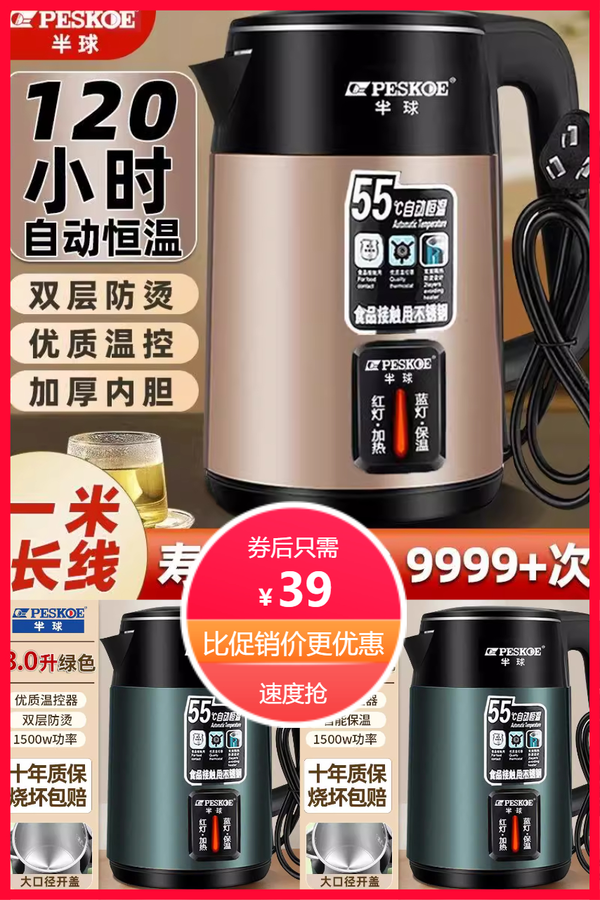 正半球热水壶不锈钢电热水壶3L烧水壶保温家用电水壶直播 纤梦精品优选店 普通活动 销量:0 正半球热水壶不锈钢电热水壶3L烧水壶保温家用电水壶直播 3L大容量+保温功能!!快速烧水!持久保温!不锈钢材质,安全耐用!!关键是家用电水壶!! 券后价39.00 限时活动 原价139.00 复制口令 前往购买 购物就到券老哥,超多实惠享不停 营销计划 轮播图(可左右滑动) 可设置图片简介 详情图 本站地址http://qlg.zskdy.cn/(防失联) THE END 说明 【声明】本站只提供信息展示,购物信息链接到第三方平台,所有交易均在第三方平台发生,与本站无关。 【合作】商合作联系邮箱yylewl@qq.com!