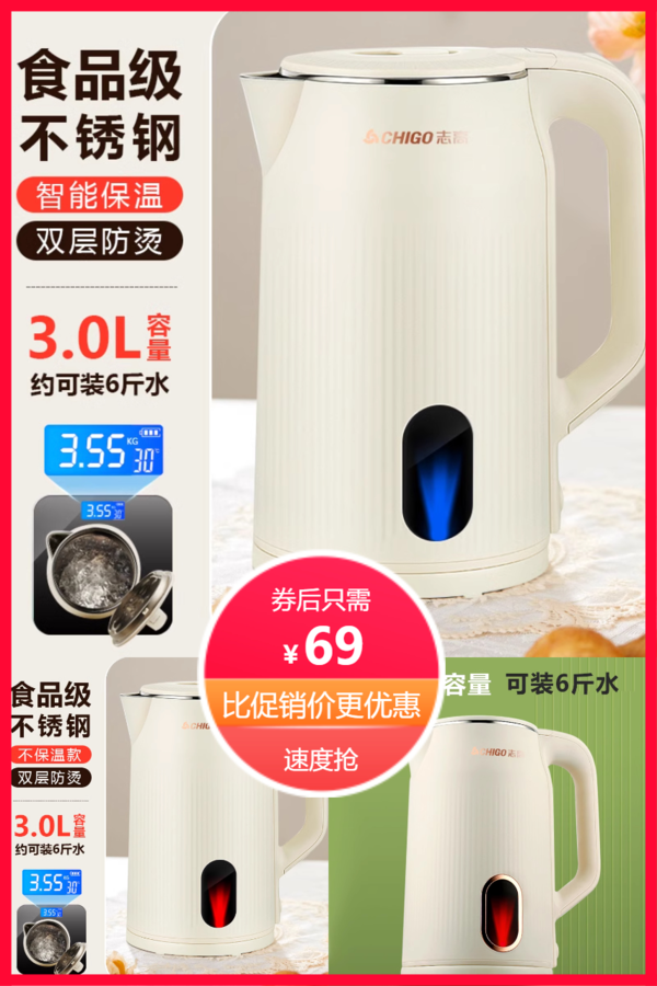 志高3.0L大容量电热水壶 自动断电烧水壶家用热水壶LOGO礼品 流年乱了沉浮后 普通活动 销量:0 志高3.0L大容量电热水壶 自动断电烧水壶家用热水壶LOGO礼品 志高电热水壶家用烧水壶保温自动断电不锈钢大容量热水壶,电热水壶2L家用304不锈钢,健康安全无异味,高颜值全自动水壶,简单大气的外观设计,实现温水自由,双层隔热不烫手! 券后价69.00 限时活动 原价169.00 复制口令 前往购买 购物就到券老哥,超多实惠享不停 营销计划 轮播图(可左右滑动) 可设置图片简介 详情图 本站地址http://qlg.zskdy.cn/(防失联) THE END 说明 【声明】本站只提供信息展示,购物信息链接到第三方平台,所有交易均在第三方平台发生,与本站无关。 【合作】商合作联系邮箱yylewl@qq.com!