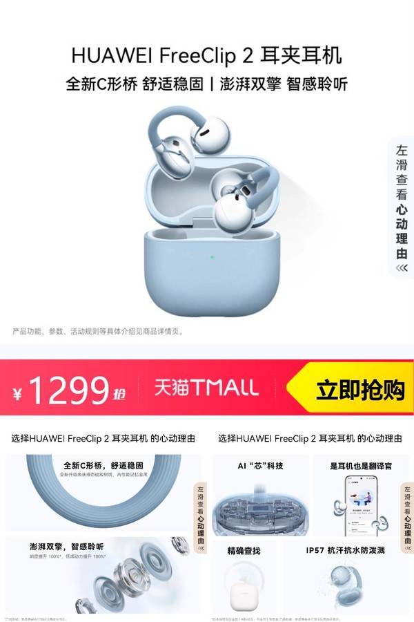 【新品】华为FreeClip 2 耳夹耳机开放式蓝牙无线耳机全新C形桥 华为官方旗舰店 普通活动 销量:10000 【新品】华为FreeClip 2 耳夹耳机开放式蓝牙无线耳机全新C形桥 【1299-淘金币25.98=1273.02!6期免息,支持以旧换新】它采用了先进的音频技术,无论是听流行音乐还是古典音乐,都能带给你身临其境的听觉享受。 券后价1299.00 限时活动 原价1299.00 复制口令 前往购买 购物就到券老哥,超多实惠享不停 营销计划 轮播图(可左右滑动) 可设置图片简介 详情图 本站地址http://qlg.zskdy.cn/(防失联) THE END 说明 【声明】本站只提供信息展示,购物信息链接到第三方平台,所有交易均在第三方平台发生,与本站无关。 【合作】商合作联系邮箱yylewl@qq.com!