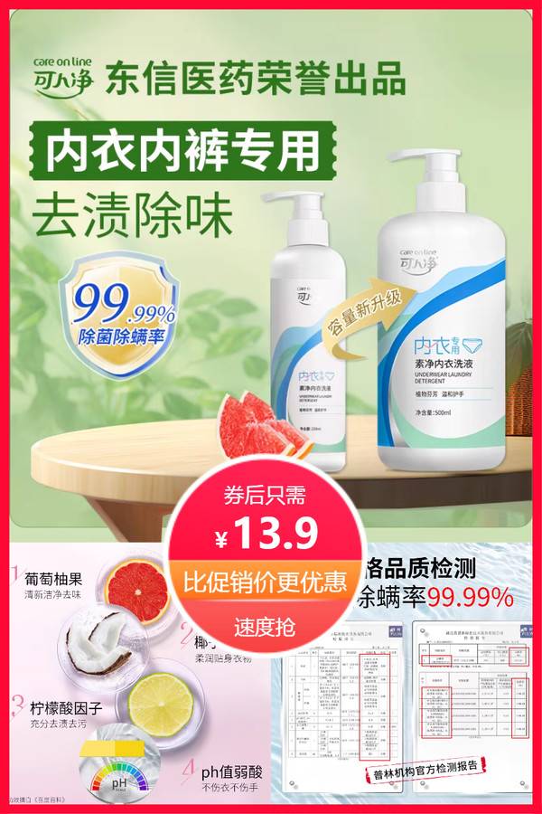 可人净内衣洗衣液500ml 内衣内裤清洗液男女士用清洁剂温和不伤手 可人净旗舰店 普通活动 销量:10000 可人净内衣洗衣液500ml 内衣内裤清洗液男女士用清洁剂温和不伤手 淡淡的清新香气,去味净味!添加阴离子表面活性剂,离子渗入!针对各类分泌物、残留物、血渍、尿渍靶向清洁!轻松去渍搓洗不费力,低泡易漂衣净无忧! 券后价13.90 限时活动 原价26.60 复制口令 前往购买 购物就到券老哥,超多实惠享不停 鹊桥活动 轮播图(可左右滑动) 可设置图片简介 详情图 本站地址http://qlg.zskdy.cn/(防失联) THE END 说明 【声明】本站只提供信息展示,购物信息链接到第三方平台,所有交易均在第三方平台发生,与本站无关。 【合作】商合作联系邮箱yylewl@qq.com!