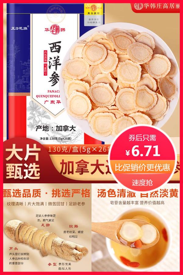 华韩骏龙加拿大进口西洋参片130克花旗参片泡水喝滋补养生铁罐装 华韩骏龙 普通活动 销量:2000 华韩骏龙加拿大进口西洋参片130克花旗参片泡水喝滋补养生铁罐装 【可签到+官方立减1.19元+首单直降1元到手更优】加拿大进口西洋参片,增强体力,提高免疫力,不仅含有丰富的营养成分,而且经过特殊工艺制成,口感鲜美,让你享受健康的滋味。无论是工作忙碌的白领,还是户外 券后价6.71 限时活动 原价9.90 复制口令 前往购买 购物就到券老哥,超多实惠享不停 营销计划 轮播图(可左右滑动) 可设置图片简介 详情图 本站地址http://qlg.zskdy.cn/(防失联) THE END 说明 【声明】本站只提供信息展示,购物信息链接到第三方平台,所有交易均在第三方平台发生,与本站无关。 【合作】商合作联系邮箱yylewl@qq.com!