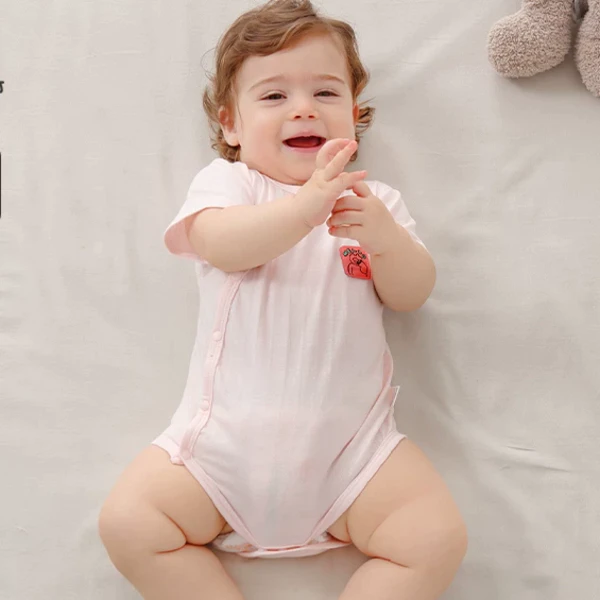 小猪大卫夏新生婴儿A类纯棉包屁衣男女宝宝短袖对开哈衣爬爬服