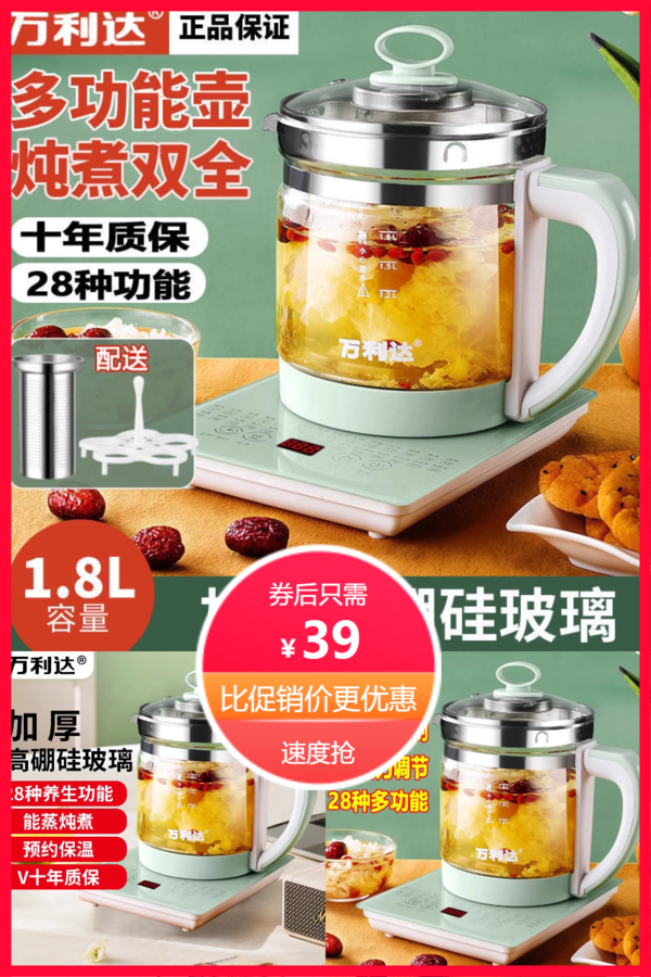 万利达养生壶办公室家用多功能烧水壶煎药壶煮茶养生壶礼品 流年乱了沉浮后 普通活动 万利达 销量:0 万利达养生壶办公室家用多功能烧水壶煎药壶煮茶养生壶礼品 万利达集团,是中国电子企业之一,1500w大功率,加厚彩钢,万利达电热水壶保温一体大容量快烧水壶 券后价39.00 限时活动 原价139.00 复制口令 前往购买 购物就到券老哥,超多实惠享不停 营销计划 轮播图(可左右滑动) 可设置图片简介 详情图 本站地址http://qlg.zskdy.cn/(防失联) THE END 说明 【声明】本站只提供信息展示,购物信息链接到第三方平台,所有交易均在第三方平台发生,与本站无关。 【合作】商合作联系邮箱yylewl@qq.com!